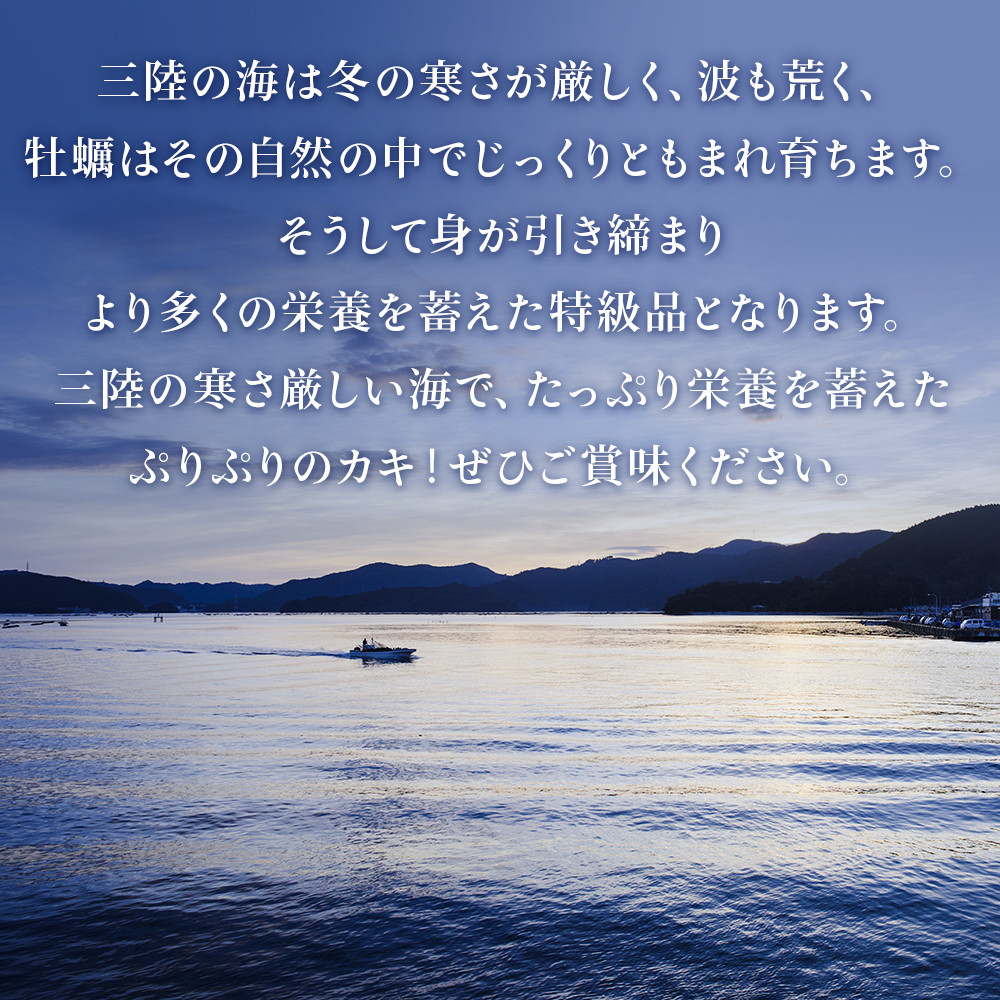 三陸の海は冬の寒さが厳しく、波も荒く、牡蠣はその自然の中でじっくりともまれ育ちます。そうして身が引き締まりより多くの栄養を蓄えています。