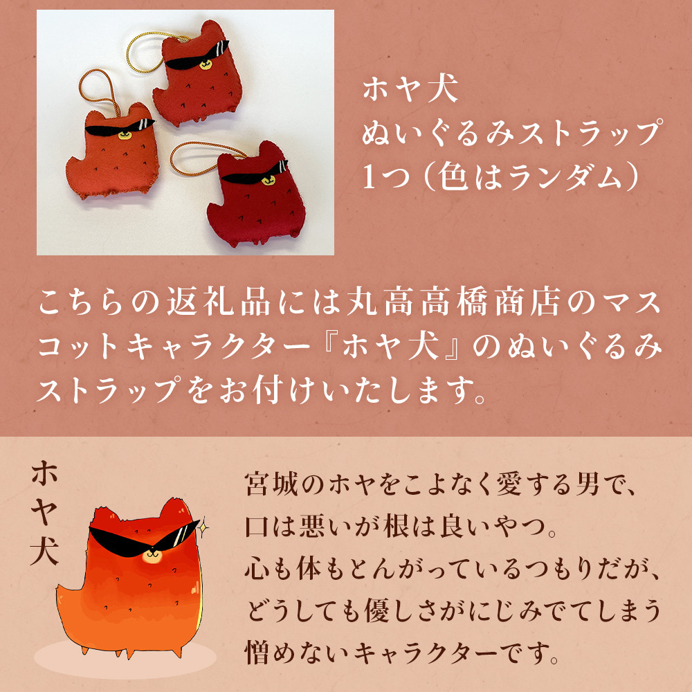 丸高高橋商店のマスコットキャラクター『ホヤ犬』のぬいぐるみストラップ付!