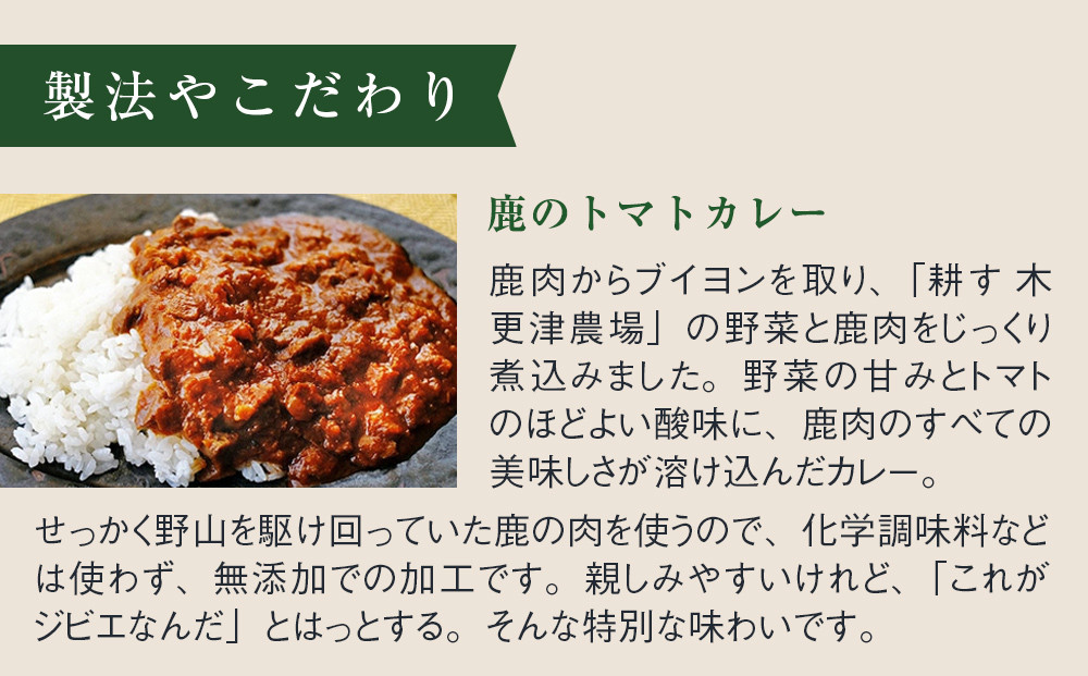 | 容量 | イサダと茎わかめのソーセージ:(80g)×2パック フレッシュハーブのソーセージ:2本入り (80g) ×2パック 鹿肉と牡蠣のソーセージ 2本入り: (80g)×2パック 鹿のワイルドハンバーグ:(100g)×2パック 鹿のトマトカレー:(200g)×4パック 【原材料】 ■鹿肉と牡蠣のソーセージ 鹿肉、豚脂、牡蠣、卵、香辛料、食塩、松の実、パセリ、オリーブオイル、白ワイン、レモン果皮 ■フレッシュハーブのソーセージ 鹿肉、豚油、パセリ、卵、香辛料、食塩、レモン果皮 ■イサダと茎わかめのソーセージ 鹿肉、豚油、わかめ、卵、生姜、長ネギ、香辛料、小海老、醤油、魚粉 ■鹿のワイルドハンバーグ 鹿肉、玉ねぎ、豚脂、卵、香辛料、食塩 ■鹿のトマトカレー 鹿肉、鹿ブイヨン、トマト、赤ワイン、猪ブイヨン、玉ねぎ、にんじん、香辛料、中濃ソース、ハチミツ、片栗粉、醤油、食塩、ニンニク、砂糖 |
