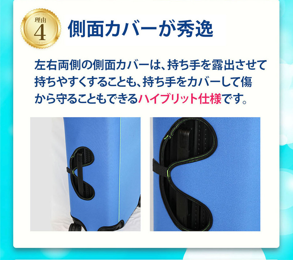 伸縮性、弾力製に優れ、キャリーバッグを守るのに優れたアイテムです。
