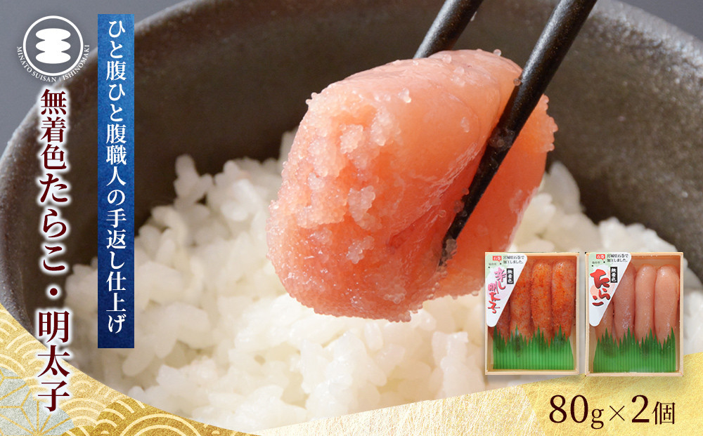 たらこ専門店だから手間ひま惜しまず職人が手漬けで仕上げています。 石巻 無着色たらこと明太子160gセット 冷凍 タラコ めんたいこ 小分け 家庭用 魚卵 海鮮 魚介 おかず ご飯のお供 おつまみ 酒の肴 手漬け 無着色 着色料不使用 発色剤不使用 湊水産 宮城県 石巻市