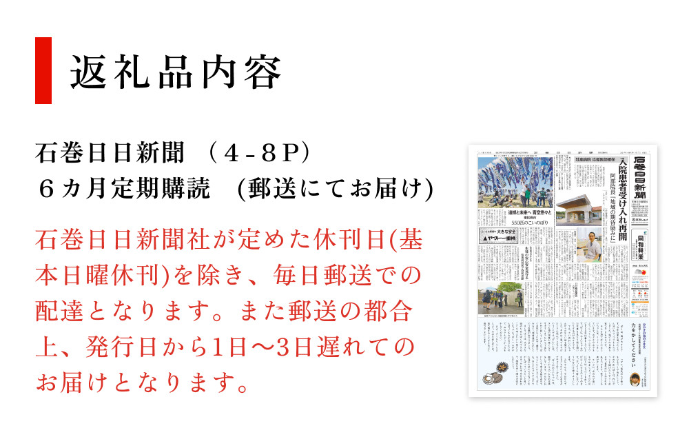| 容量 | 石巻日日新聞(4-8P) 6カ月定期購読(郵送) |