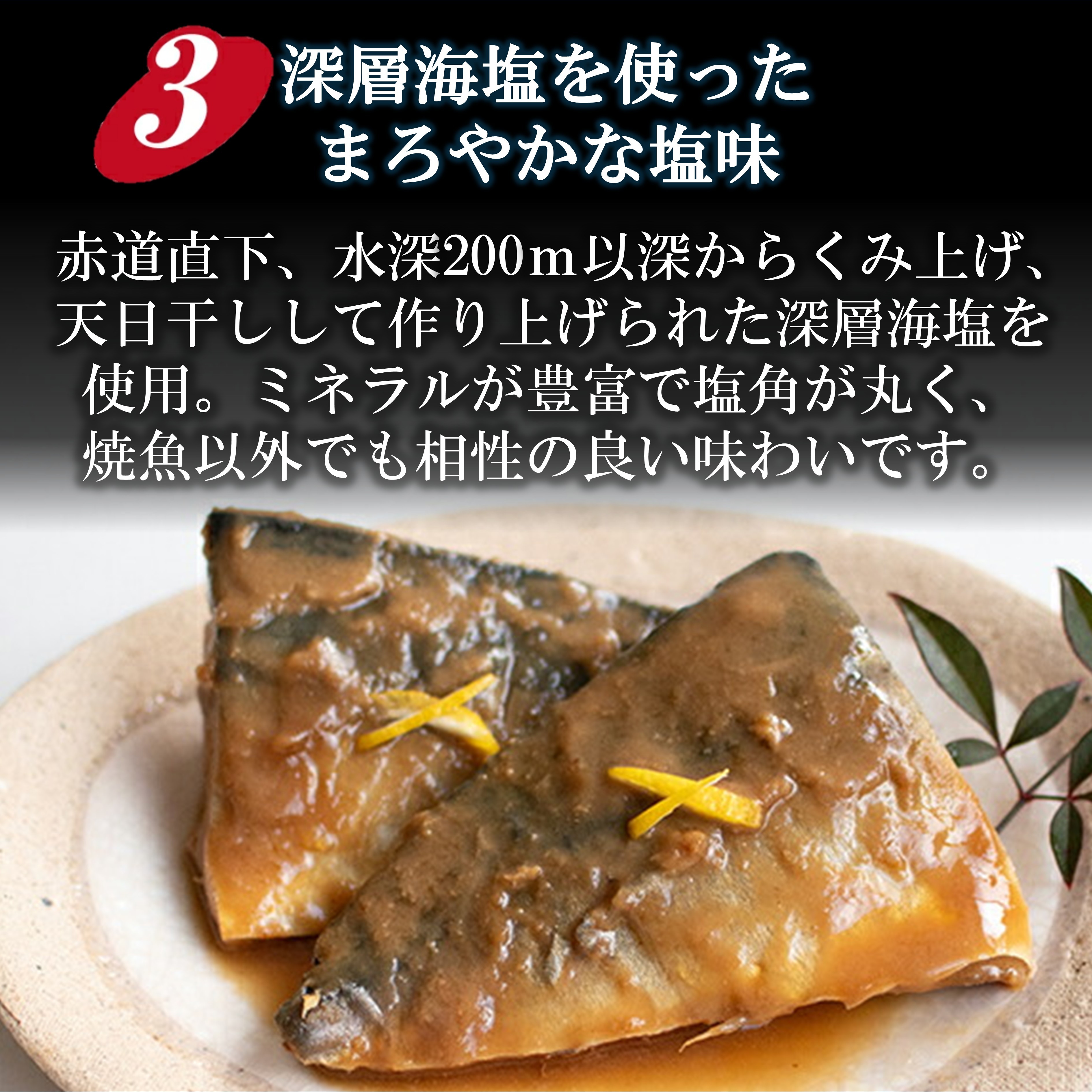 原料はさばと深層海塩のみ。保存料・着色料は一切使用しておりません。
