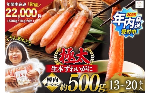 【2025 年内配送】 極太 生本ずわいがに 棒肉ポーション 約500g…