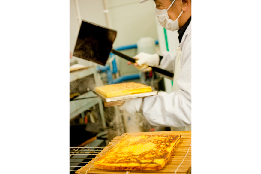 魚肉と全卵を使用し昔ながらの製法で簀で巻いて作ります。
