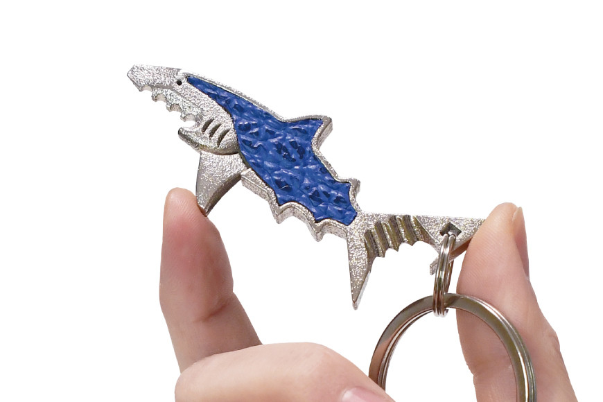 世界最高品質と評される宮城県気仙沼産ヨシキリザメ皮革を使用した機能的なサメ型のマルチツールです。