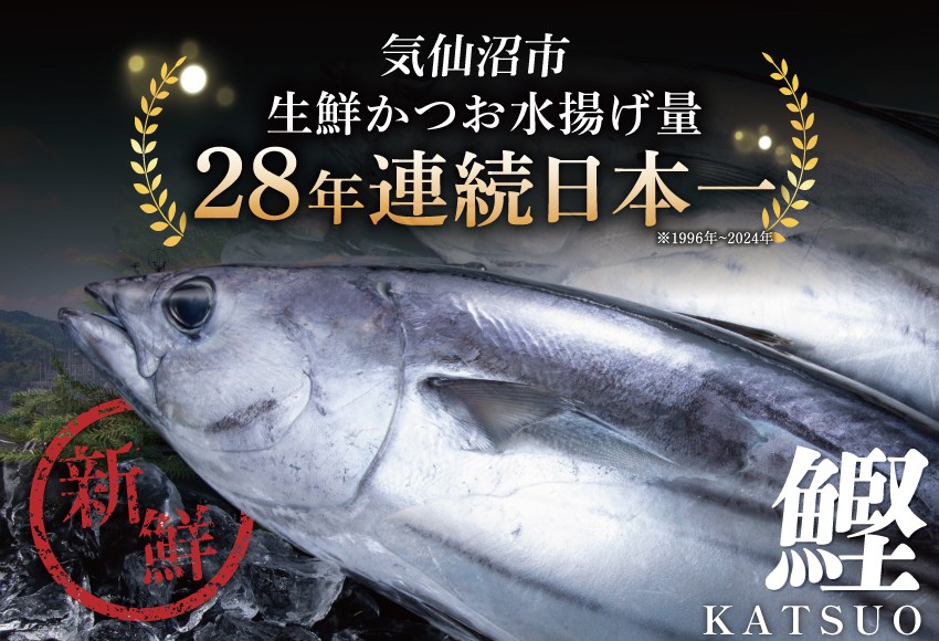 生鮮かつお水揚げ量28年連続日本一の気仙沼からお届けいたします!