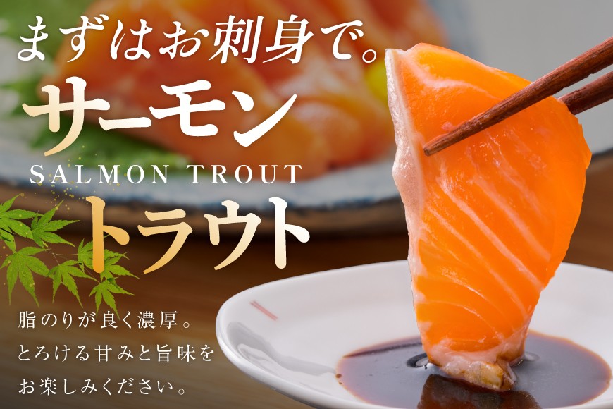 | 容量 | 総重量1kg(200g×5p) ■原材料 サーモントラウト(チリ産)、調味料(アミノ酸) ■原産地 チリ ■加工地(製造地) 気仙沼市 |