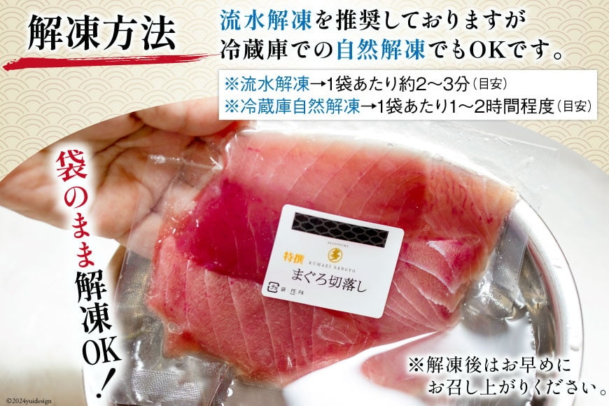 そのままお刺身、手巻き、海鮮丼、漬け丼でも、お好みでお召し上がりいただけます。 ●解凍方法について 流水解凍を推奨しておりますが、冷蔵庫での自然解凍でもOKです。