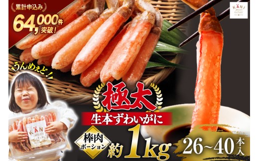 極太 生本ずわいがに 棒肉ポーション 約1kg 26本〜40本入り 殻…