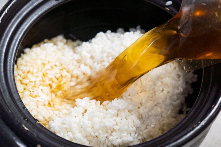 解凍してお米を2合洗って水に浸けて準備ください。(お米は炊き上げる1時間くらい前に洗って水に浸けておいてください)