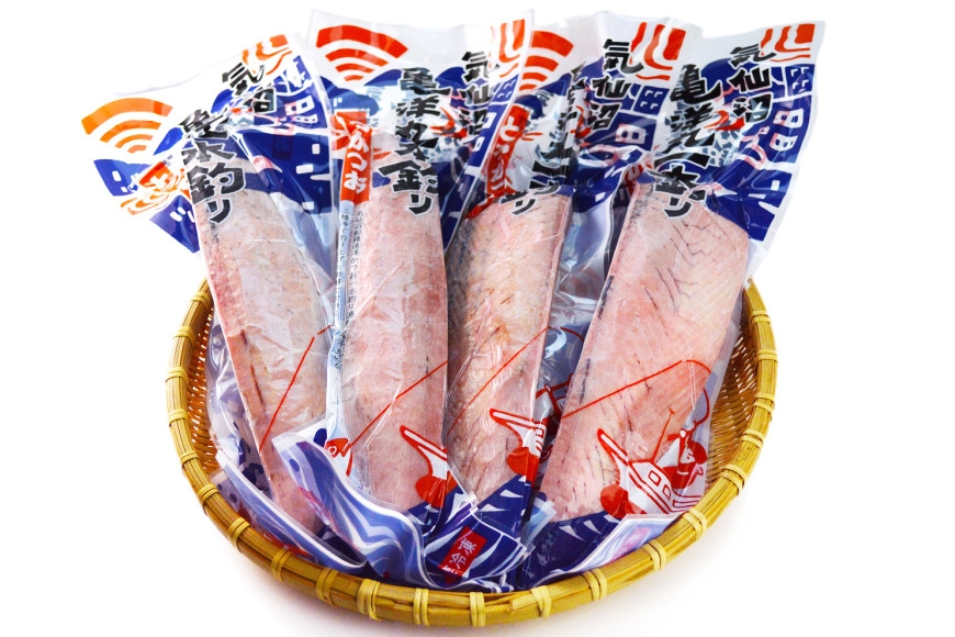 気仙沼船籍の遠洋一本釣りかつお船「亀洋丸」が、漁獲直後、船上で急速冷凍したとろかつおです。