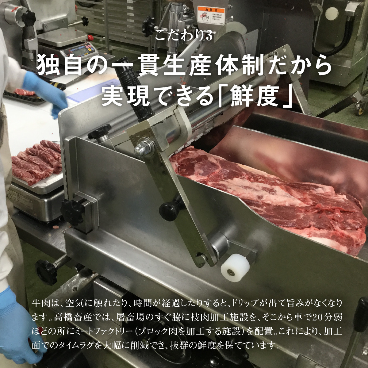 澄んだ空気と清涼な水、豊かな自然、四季がはっきりとした東北の山麓の気候のなかに私達の牧場があります。蔵王牛は牧場環境から育て方、飼料、安全性に至るまで些細なこだわりを積み重ね、農場HACCP認証の牧場で大切丁寧に育てられた牛肉です。