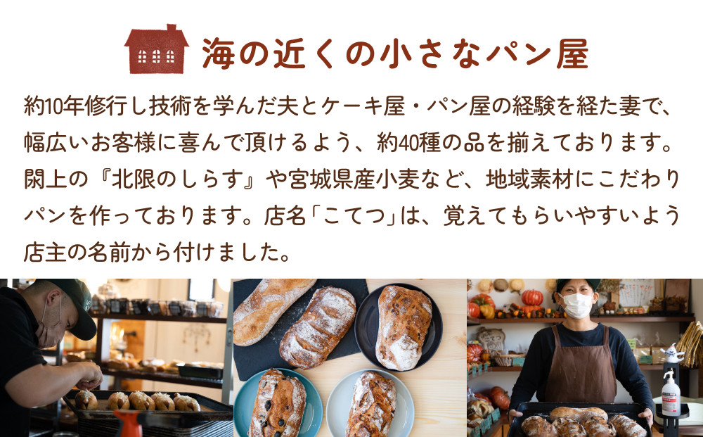 海の近くの小さなパン屋 【5ヵ月定期便】名取 閖上 の ぱんやこてつ 手作り 国産小麦のハード系パンセット