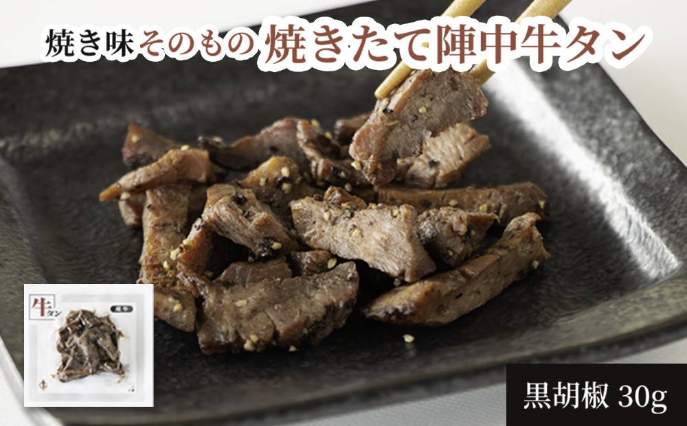噛むほどに広がる牛タンの旨みをあらびき黒胡椒の香りが引き立てます! 焼きたて陣中牛タン30g 黒胡椒