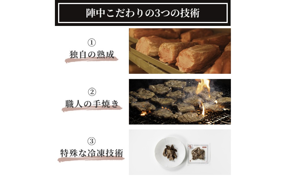塩麹熟成と低温熟成を行う独自の熟成技術により、厚切りでもしっとりとやわらかく、牛タン本来の風味を最大限に引き出します。