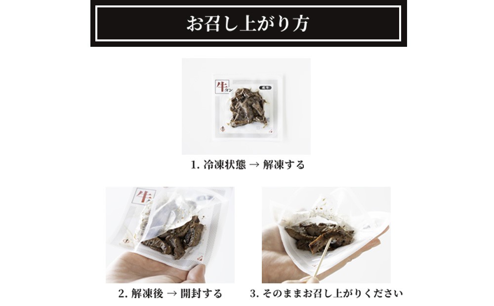 職人が一枚ずつ丁寧に焼き上げた牛タンを特殊な技術で冷凍し、自然解凍するだけでジューシーで香ばしい味わいをお楽しみいただける商品です。噛むほどに広がる牛タンの旨みをあらびき黒胡椒の香りが引き立てます。成牛ならではの歯ごたえと、旨みとのバランスが絶妙で、お酒が進む味わいです。