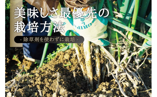 カマシチねぎ屋では、作業効率よりも美味しさを追求したネギ栽培が行われています。根の活着が悪くなる除草剤を使わずに、広大な面積のねぎ畑を手間ひまかけて管理する事で、ネギにストレスを与えずに極力自然な状態で成長を促します。収穫が近づくと、畑から抜いたネギをそのまま生で食べて、味や糖度、口あたりを確かめます。そうすることで、最適な出荷のタイミングを確実に見極めています。