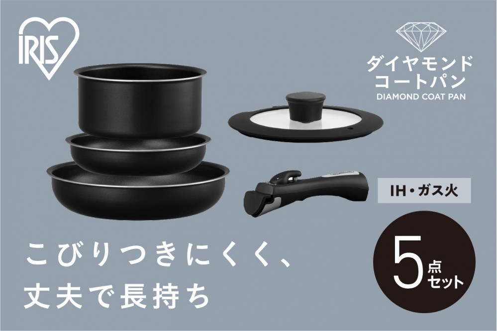 ダイヤモンドコートフライパン・なべ 5点セットDCI-FP5Sブラ…