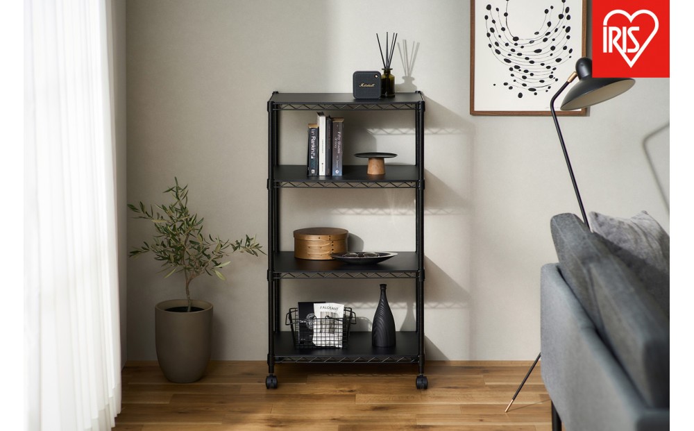 カラーメタルラック ウッドボード付き CMM-55104B ブラック