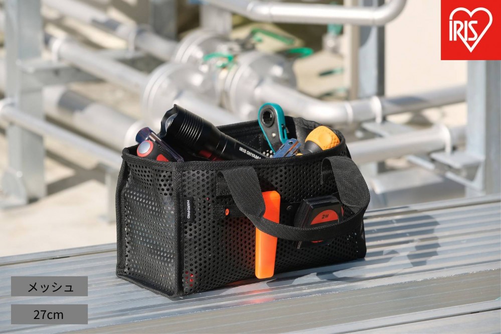 軽くて中身が見える万能バッグ、メッシュツールバッグです。