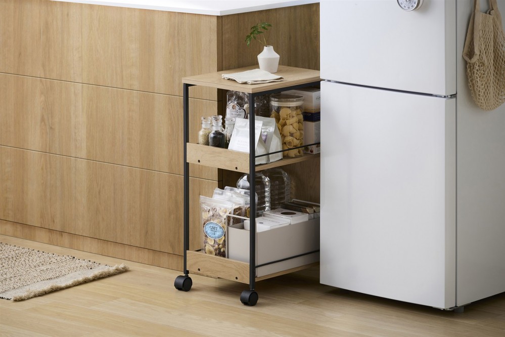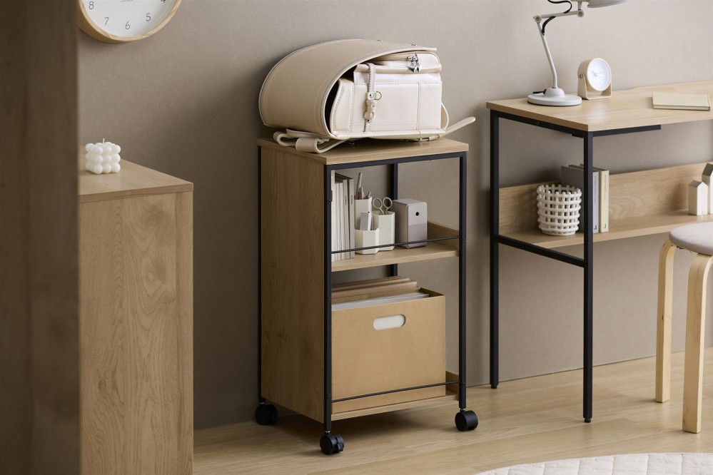 | 容量 | ●商品サイズ(cm) 幅約32.3×奥行約39.6×高さ約68 ※商品サイズはキャスターを含めたサイズです。 ●質量 約5.7kg ●耐荷重 天板:約15kg 棚板(1枚当たり):約15kg 全体:約45kg ※耐荷重は測定値であり、保証値ではありません。 ●主要材質 天板:合成樹脂化粧パーティクルボード(メラミン樹脂) 棚板・前板:プリント紙化粧パーティクルボード 側フレーム:金属(鋼)(エポキシ樹脂塗装) キャスター:PP、金属(鋼) ●必要工具 +ドライバー(サイズ:2番) ※電動ドライバーの使用可。インパクトドライバーは使用しないでください。 |