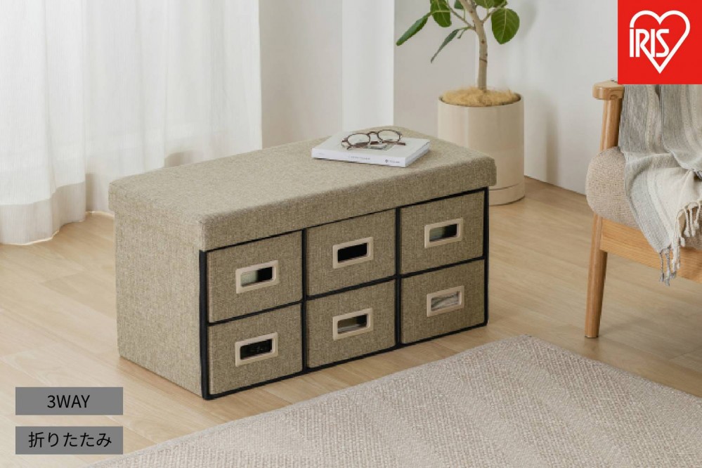 | 容量 | ●製品サイズ(cm) 使用時外寸:幅約76×奥行約37.5×高さ約38.5 座面の高さ:約38.5 本体内寸:幅約72.5×奥行約33.5×高さ約33.5 引き出し(1個あたり)内寸:幅約22.5×奥行約33×高さ約14 折りたたみ時:幅約76×奥行約37.5×高さ約13 ※破損する恐れがあるため、収納ボックスとして使用するときは座らないでください。 ●製品質量 約10.7kg ●構造部材 繊維板 ●張り材 ポリエステル ●クッション材 ウレタンフォーム ●耐荷重 収納ボックス時:天面約10kg/引き出し(1個あたり)約3kg スツール時:約80kg ※耐荷重は測定値であり、保証値ではありません。 |