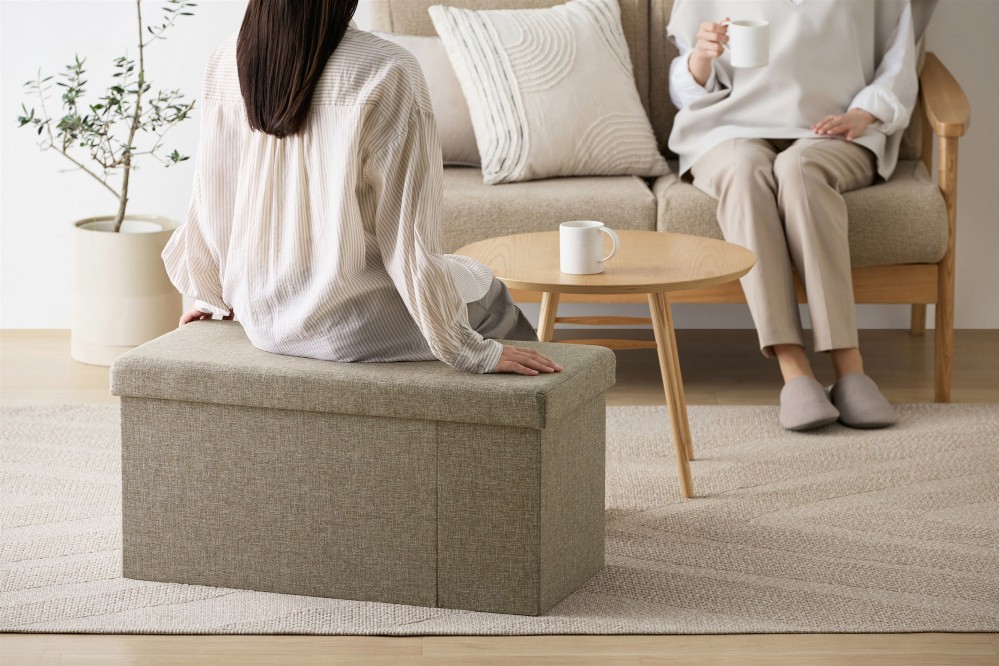 3/ワイド収納スツール:仕切りを外して大きなモノも収納可能。