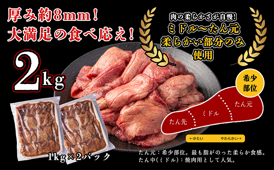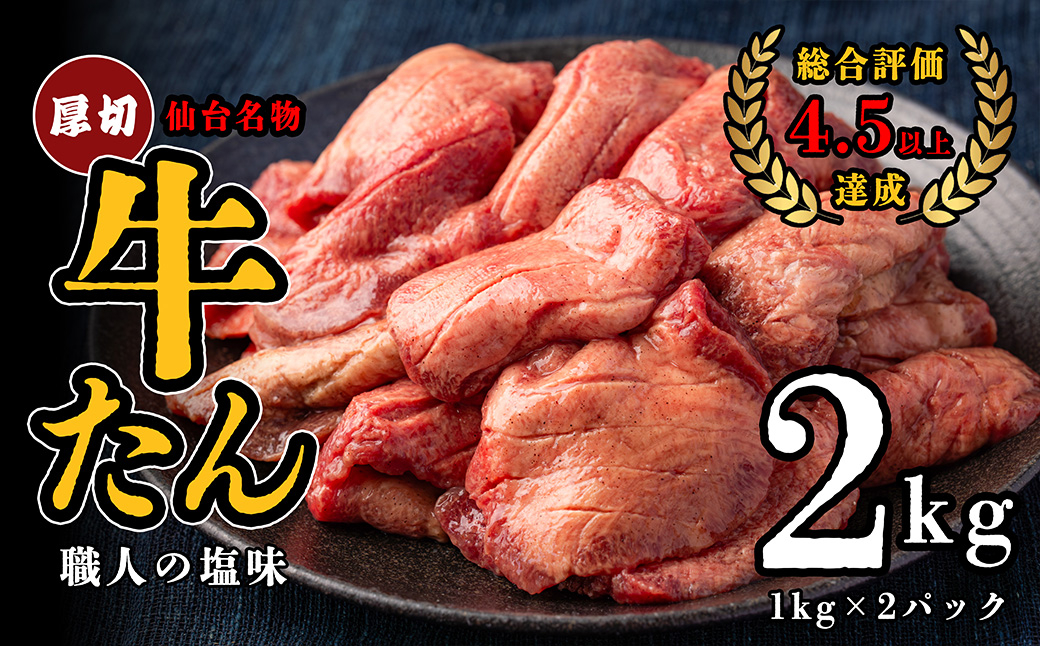 創業35年以上、宮城の牛タン文化黎明期からの老舗の特選牛タン! 仙台名物 特選厚切牛たん 2㎏ 【職人の塩味】 【04209-0268】