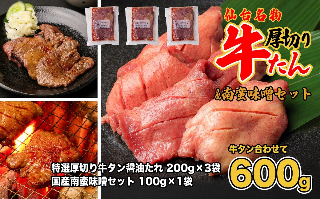 仙台名物 特選厚切牛タン8mm醤油たれ600g+国産南蛮味噌100g 【04209-0246】