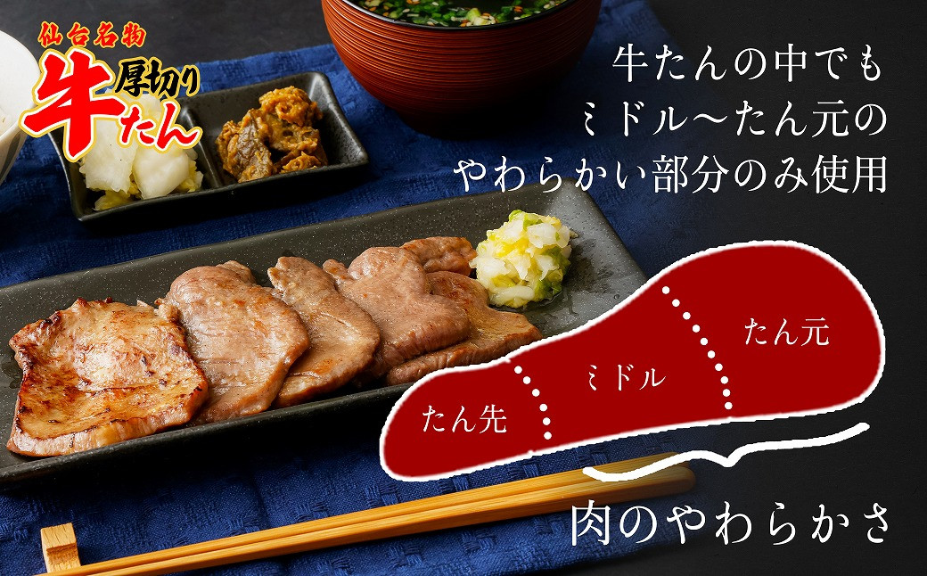 仙台名物の牛タンの柔らかで美味しい部位をお届けします。(ミドル・タン元部位)