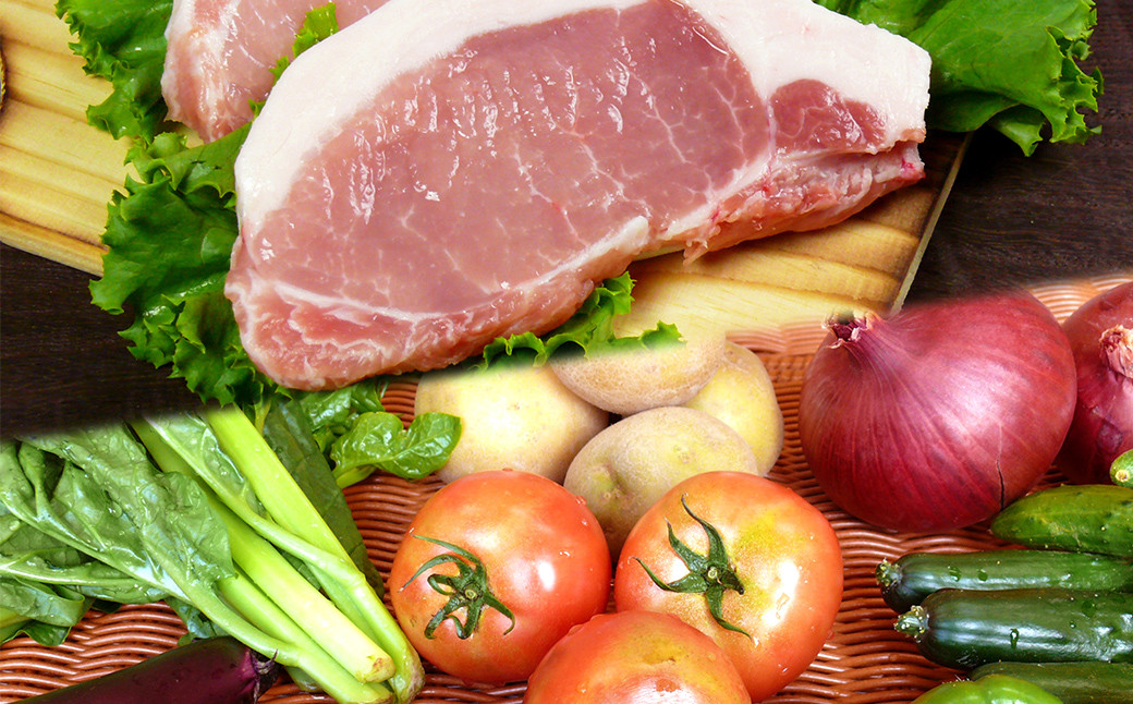 登米市内の指定農場で育てられた豚肉と旬の野菜をセットでお届けします。