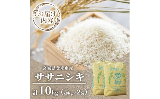 チョイスPayポイントと交換できる品 宮城県登米市から、冷めても美味しい希少なササニシキをお届けします! ≪令和7年産 新米≫ 登米市産 ササニシキ 10kg (5kg×2袋) お米 おこめ 米 コメ 白米 ご飯 ごはん おにぎり お弁当【有限会社PFTサービス】tm092