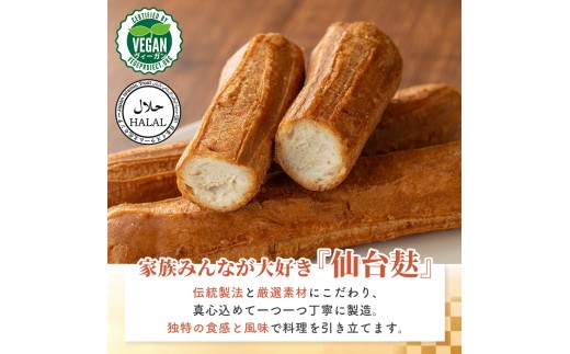 厳選した小麦とグルテンを練り合わせ良質の大豆油で揚げた風味豊かな「仙台麸」と