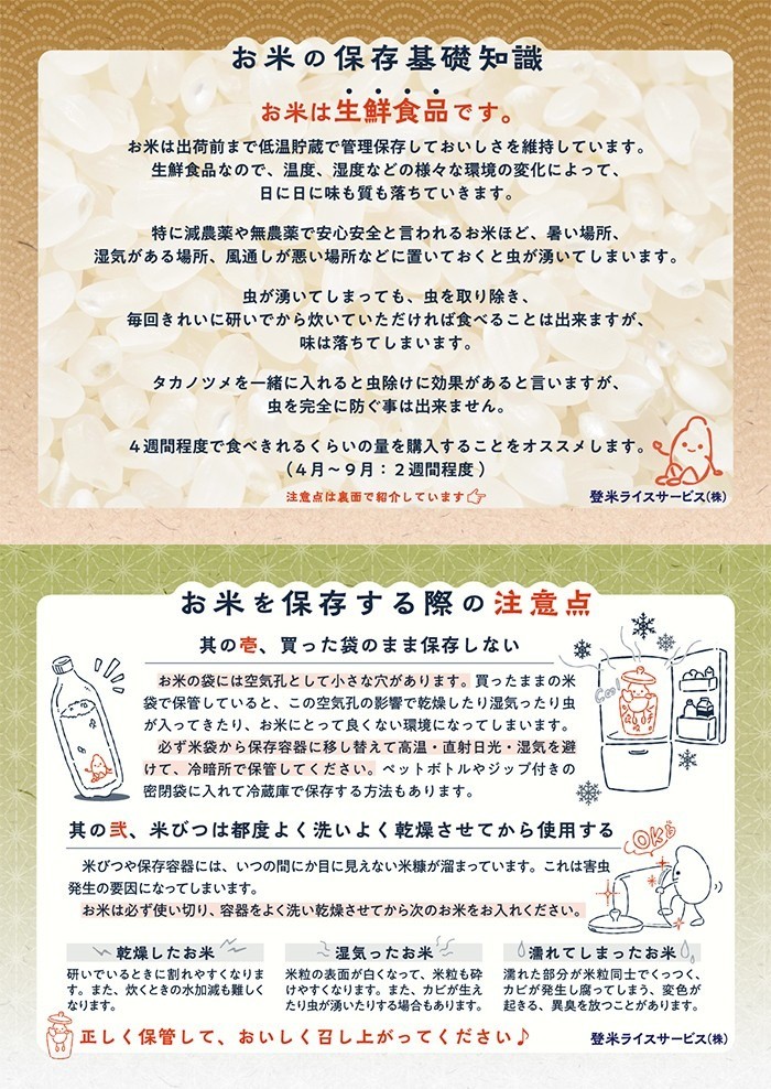 | 消費期限 | 精米時期:パッケージに記載 |