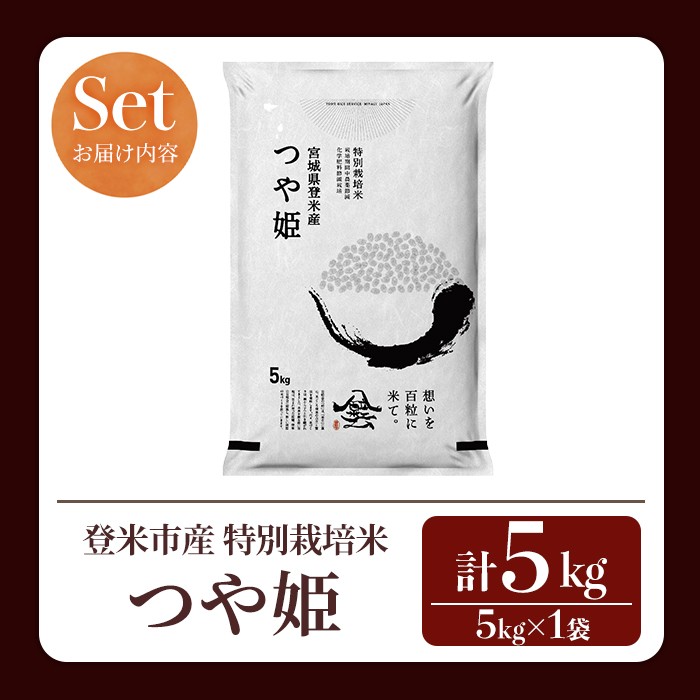 チョイスPayポイントと交換できる品 <特別栽培米>肥沃で広大な大地と北上川の清らかな水で育んだ登米市産のお米です。 【14営業日以内に発送予定】≪令和7年産≫ 特別栽培米 つや姫 5kg (5kg×1袋) 登米市産 お米 おこめ 米 コメ 白米 ご飯 ごはん おにぎり お弁当 【登米ライスサービス株式会社】tm154