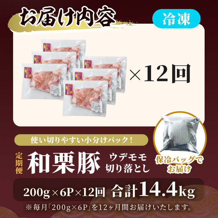 チョイスPayポイントと交換できる品 こだわりの配合飼料と国産の和栗を贅沢に食べさせた和栗豚をご堪能ください! <12ヶ月定期便>和栗豚 ウデモモ 切り落とし 合計14.4kg (200g×6P×12回) 小分け パック ぶた 豚肉 ポーク 冷凍 肉 にく お肉 カレー 肉じゃが 鍋 豚キムチ 登米産 頒布会【伊藤忠飼料株式会社】tm292