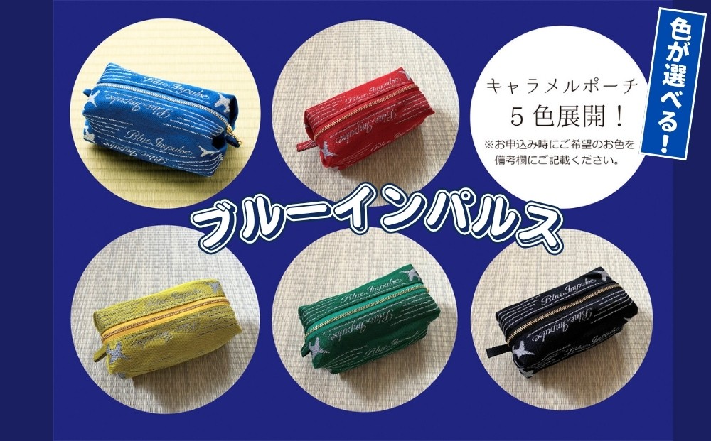 オリジナル ブルーインパルス 畳縁『キャラメルポーチ』 <色が選べる> 青 赤 黄 緑 黒 ブルーインパルス キャラメルポーチ 小物入れ 収納 ポーチ オンラインワンストップ 自治体マイページ