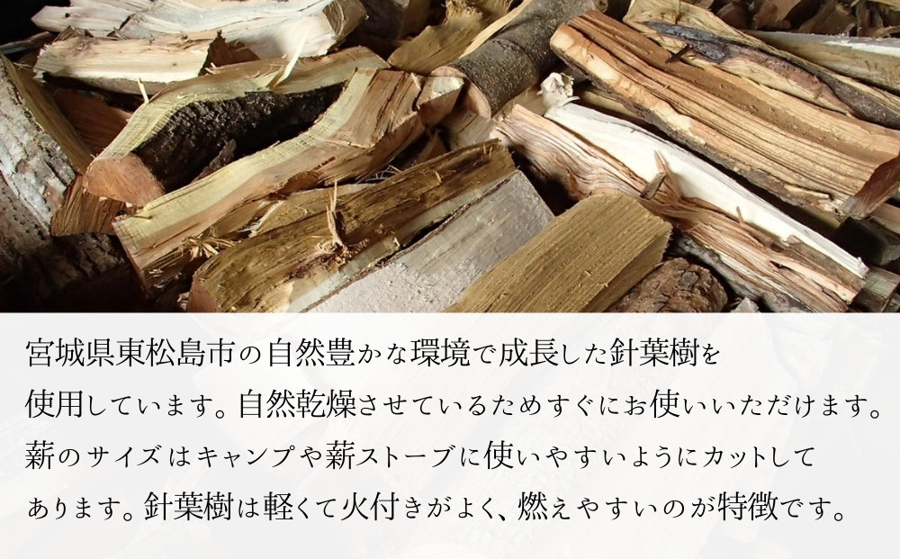 キャンプや薪ストーブに最適!宮城県東松島産の自然乾燥した針葉樹! 薪 14kg まき 針葉樹 薪ストーブ キャンプ アウトドア ソロキャンプ 冬キャンプ 焚き火 かまど 宮城県 東松島市 オンラインワンストップ