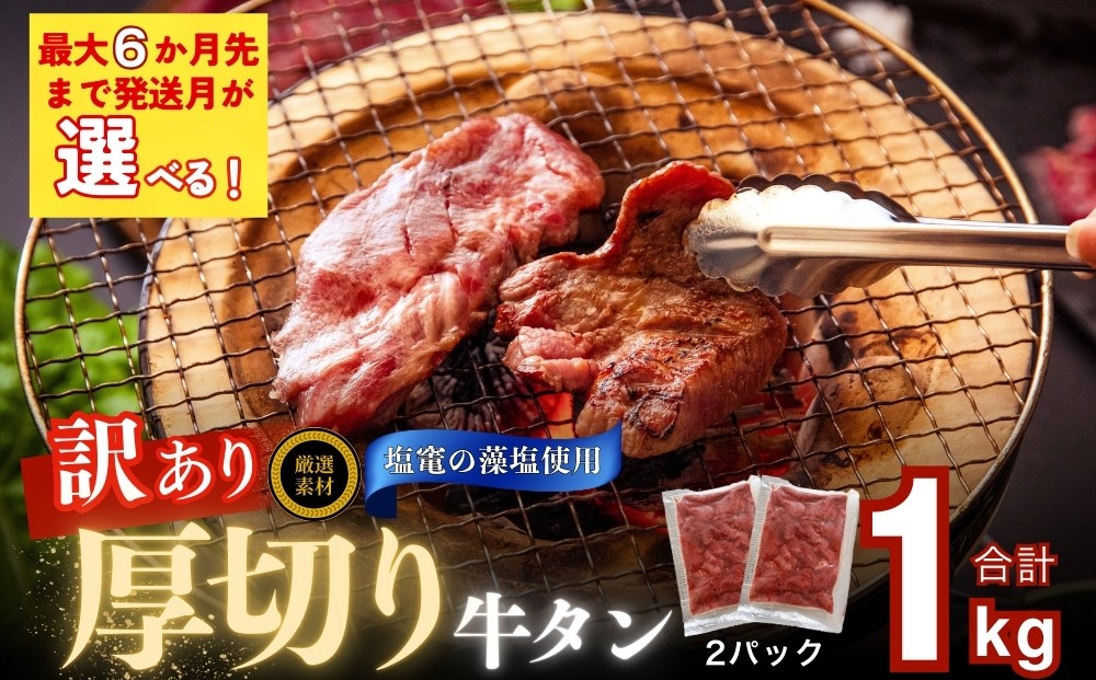 地域の生産者応援の品 部位・サイズは不揃いのため訳あり! 厚切り牛タン1kg! 【2026年3月発送】 【塩竈の藻塩 使用】訳あり 厚切り 牛タン 不揃い 1kg ( 500g × 2袋 ) 小分け 焼き肉 バーベキュー BBQ 牛たん 訳アリ 食品 宮城名物 仙台名物 牛タンふるさと納税 塩味 家計応援 冷凍 キャンプ 飯 オンラインワンストップ 宮城県 東松島市 オイタミート