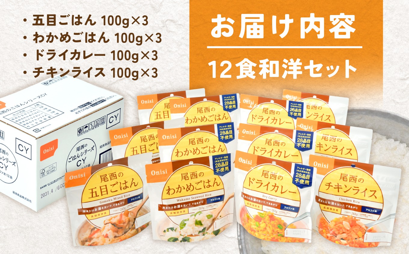 【尾西のごはん】 炊き立てごはんを非常食で!防災 備蓄 保存 非常食 尾西のごはん【和風・洋風】アルファ米12個【アウトドア・防災・備蓄に】 米 お米 ごはん 非常食 保存食 防災グッズ 防災 防災食 アルファ米 長期保存 ご飯 尾西食品 キャンプ アウトドア 登山 大崎市