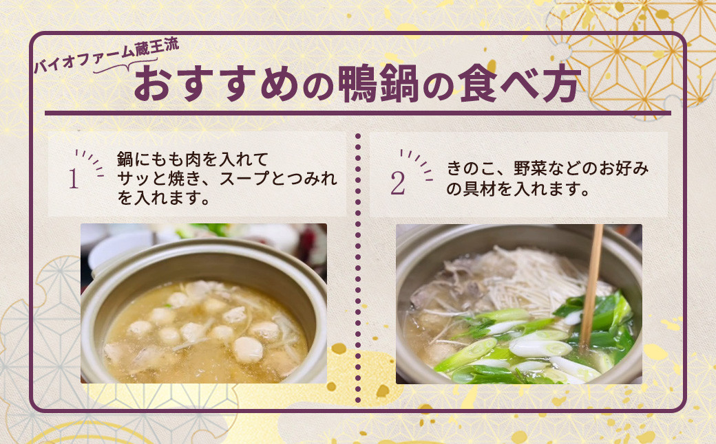 ぜひ鍋でおいしい鴨肉をお召し上がりください。