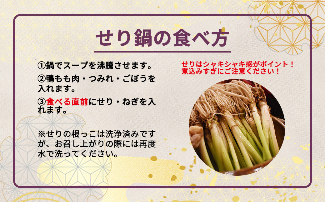 ◆◆お取り寄せで大人気の「仙台せり」と鴨肉で「せり鍋」を楽しめるセット!◆◆