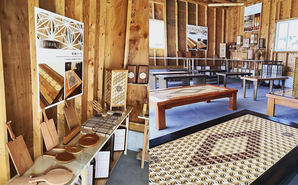 釘を使わず無垢材の部品を組んで、緻密な幾何学模様を表現する伝統技法です。