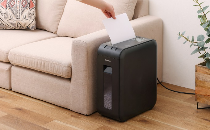 静音設計で使用時の音が気にならないパーソナルシュレッダーです。椅子に座ったまま細断可能です。キャスター付きです。細断サイズが約2×11mm(マイクロクロスカットタイプ)と細かくカット。機密情報のセキュリティにおすすめです。一度に投入できる最大細断枚数は4枚です。ダストボックスにはA4コピー用紙を約120枚収容できるので、ゴミ捨ての回数を減らせます。インテリアに調和するシンプルなデザインなので、オフィスやリビングでも使用できます。