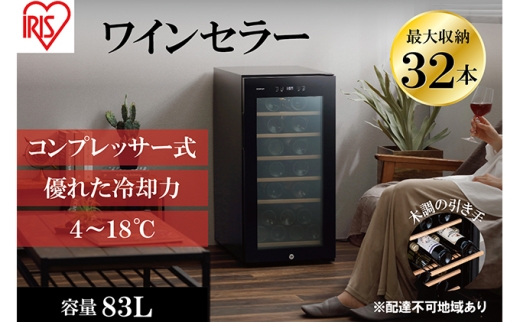 ワインセラーコンプレッサー式 32本収納 大容量 83L 高断熱3重ガラス IWC-C321A-B ブラック ワイン 酒 日本酒 アイリスオーヤマ