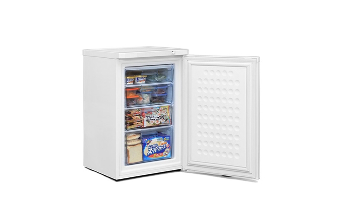 冷蔵庫のように前開き式で、庫内が見やすい透明な引き出しなので、取り出しも整理整頓も簡単。各段ごとに直接冷凍できるシステムになっているため、食品を素早く冷凍することができます。85Lは引き出しが4個ついています。トップテーブルは、耐熱温度100℃、耐荷重は30kgです。提供企業:アイリスオーヤマ株式会社