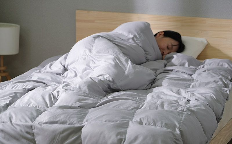 あたたかい眠りをサポートする、人工羽毛を使用した掛け布団“セミダブルサイズ(約170×210cm)”。