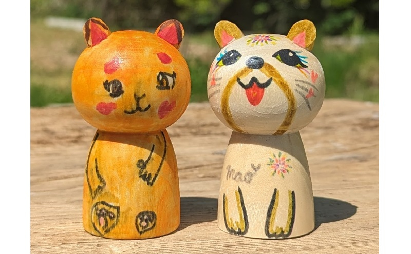 木の材質や木目によっても雰囲気や表情が変わり、世界に1つだけのオリジナルにゃんこけしを作ることができます。