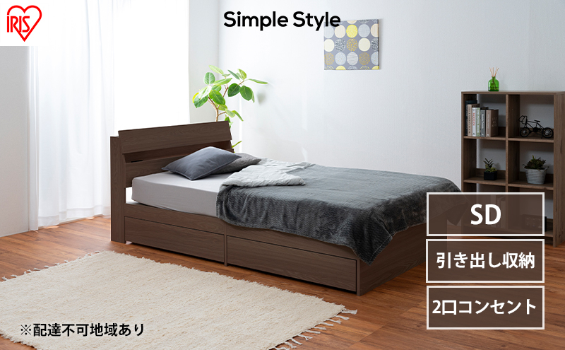 ベッド 収納 新生活 収納ベッド STBS-SD セミダブル アイリスオーヤマ ウォールナット ベッドフレーム 木目調 引き出し コンセント付き ヘッドボード 宮付き 宮棚